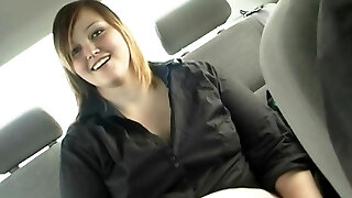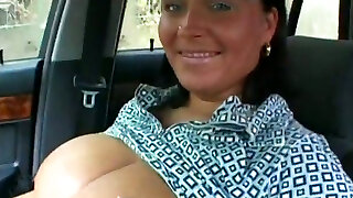 Hefty boobs hottie in her car picked up for a tit-fucking