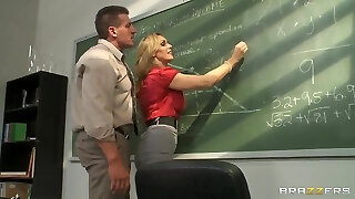 Stellar lady Tanya Tate helps the teacher get comfy in the school
