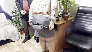 Mom-in-law took off her miniskirt and got son-in-law's cum on her culo