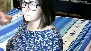 Amateur Plus-size Brunette With Glasses Fucks Dildo