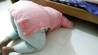 Gujarati Sexy Saas gets stuck under the table while cleaning, then Damad comes & Help her - Monstrous Booty Plowing & cummed