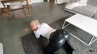Internal Cumshot For Bbw Pussy In Ripped Leather Leggings