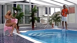 Angel Cruz And Sarah Dark-hued - Boinks Muscular In Front Of Her Home Pool