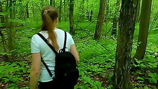 Wonderful teen slut Abi sucks dick for cash in the forest