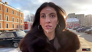 Doll agreed to walk with a stranger' s Jism on her face in a public place - Cumwalk