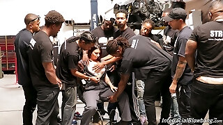 During an bi-racial gang bang a white girl takes on every black dude in town