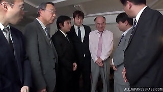 Busty Asian cockslut gets gang banged by horny businessmen