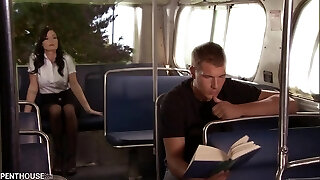 Super-naughty vivid brunette couldn't resist and approached a splendid guy in the public transport