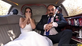 Buxom bride Jennifer Mendez gets bootie fucked in back of the limo