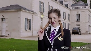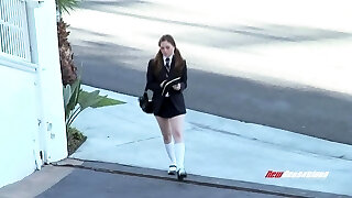 Just coddled coed girl in uniform Stella Cox penetrates with two strong professors
